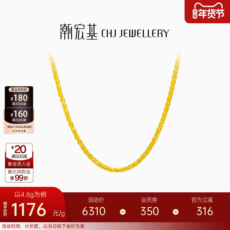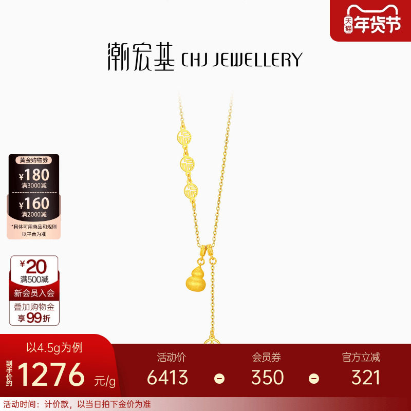 潮宏基臻金弘足金项链5G拉丝黄金坠链丝绒葫芦钱币礼物新年 计价