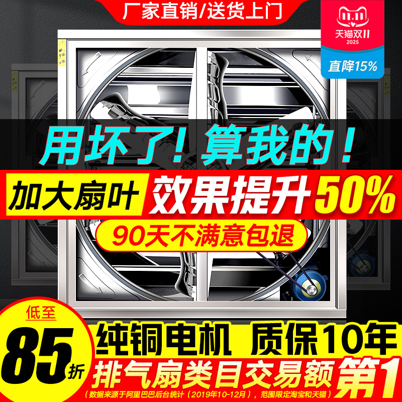 排气扇厨房家用抽风机强力静音窗户超强吸力租房抽烟机工业排风扇