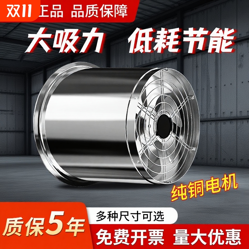 圆筒不锈钢抽风机厨房强力排气扇工业排风扇管道换气油烟室内高速