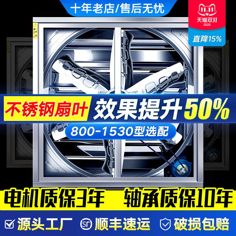 直连式负压风机强力工业排风扇工厂车间通风换气扇排气扇节能省电