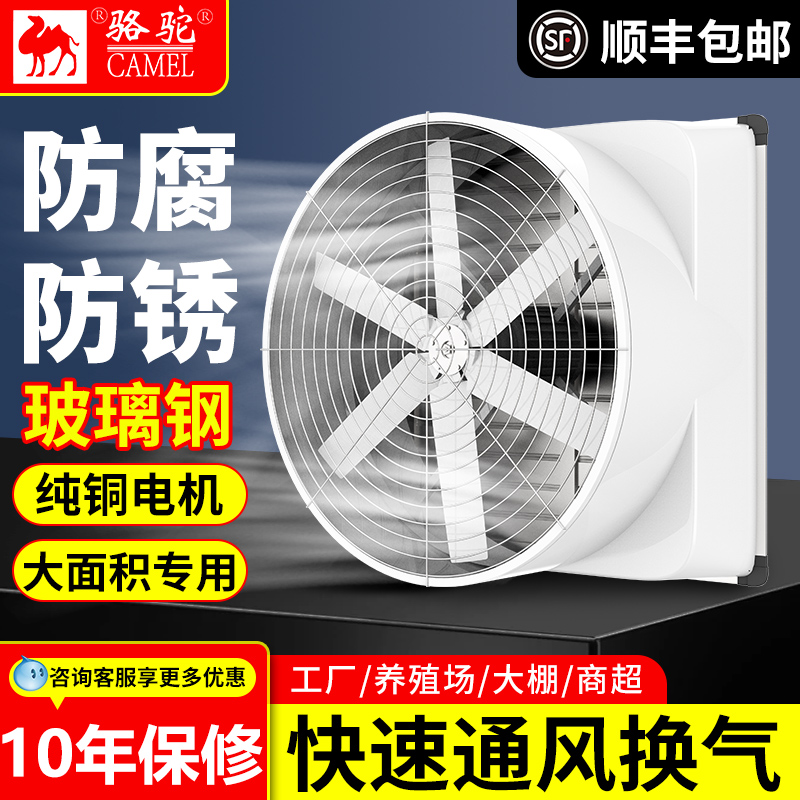 骆驼牌玻璃钢负压风机工业排风扇强力通抽风机排气扇养殖厂换气扇
