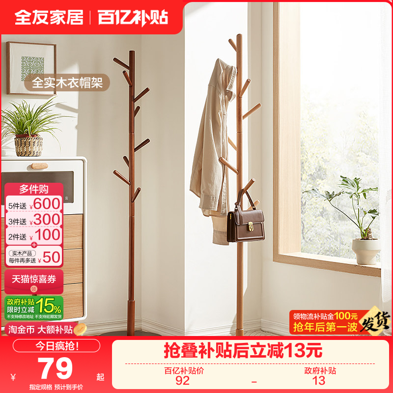 全友家居挂衣架落地卧室家用现代简约北欧全实木衣帽架子客厅KS