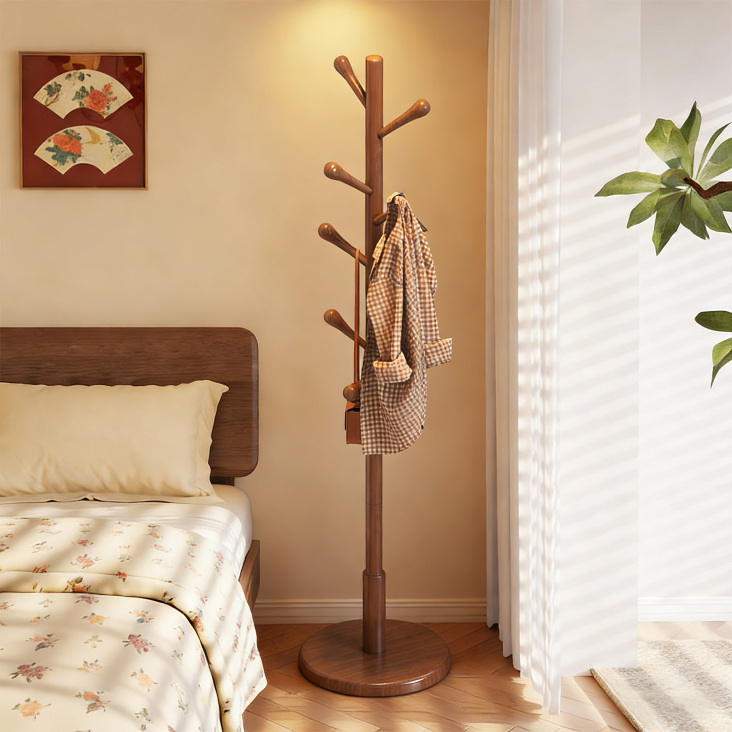 实木衣帽架落地家用卧室床边挂衣服架室内立式榉木客厅入户挂包架