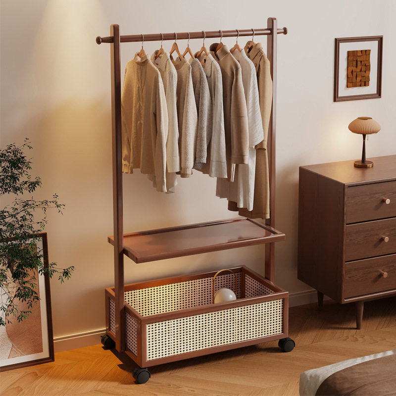 全实木衣帽架卧室落地挂衣架置物架带篓家用立式收纳架放衣服架子