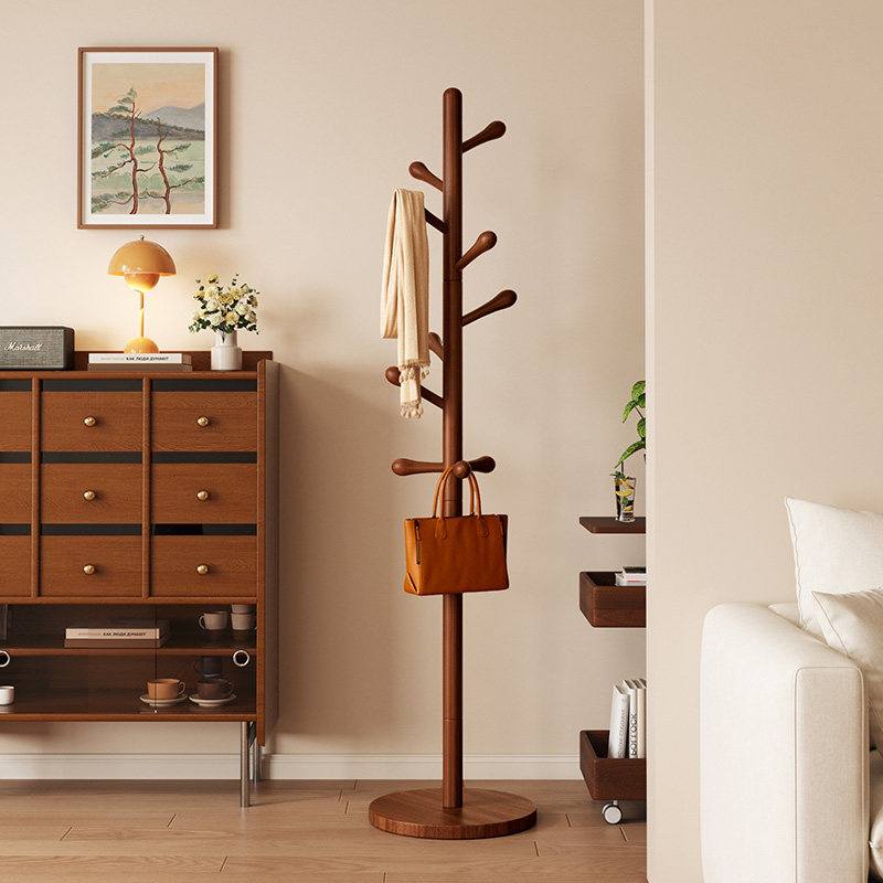 秋冬实木衣帽架家用卧室挂衣架落地式房间挂衣服的架子立式挂包架