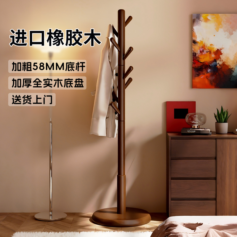 实木衣帽架家用客厅入户结实立式置衣架卧室门口次净落地挂衣服架