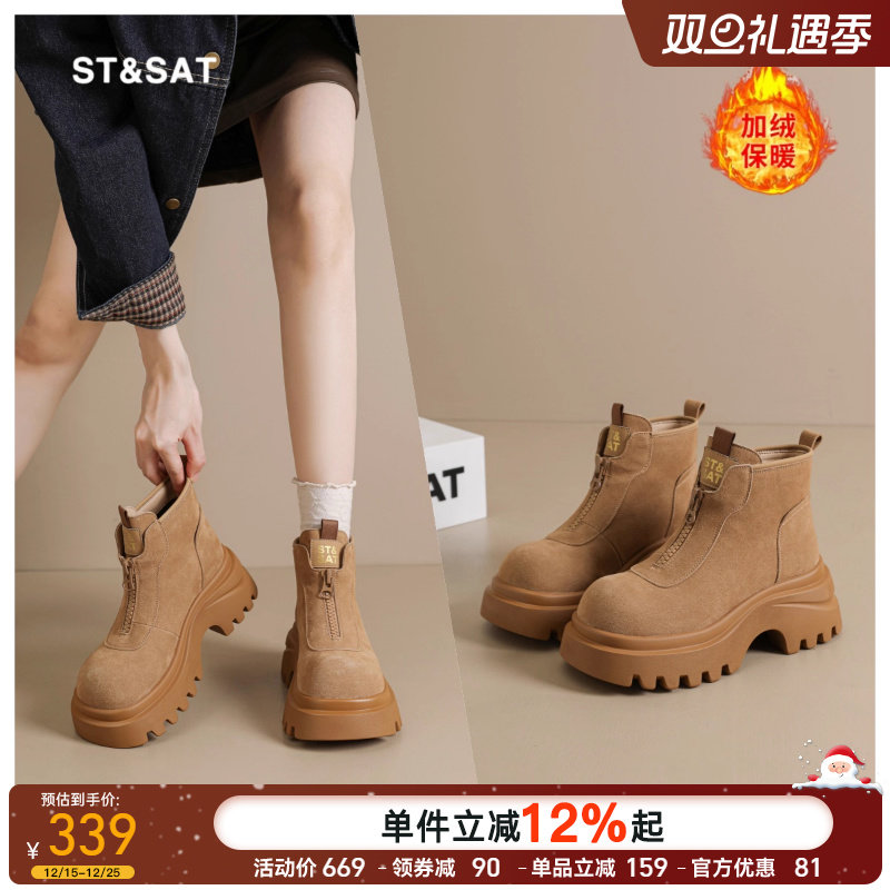 星期六短筒马丁靴女款秋冬加绒加厚保暖时装靴小个子显身材高跟靴