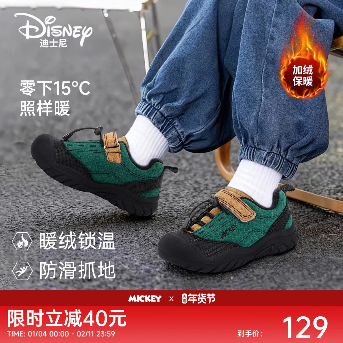 迪士尼米奇鞋子儿童运动鞋2025秋冬季新款男女童加绒棉鞋加厚童鞋