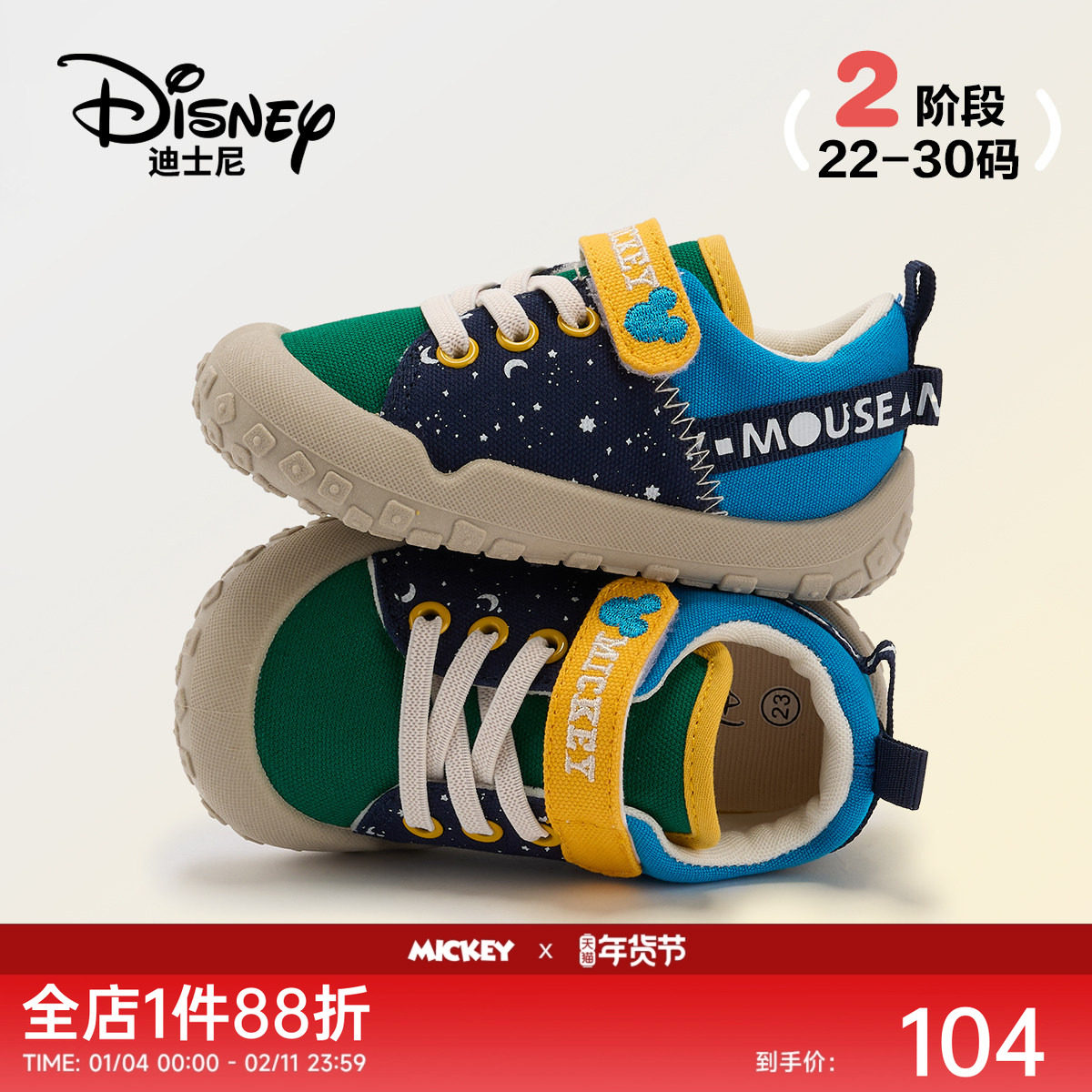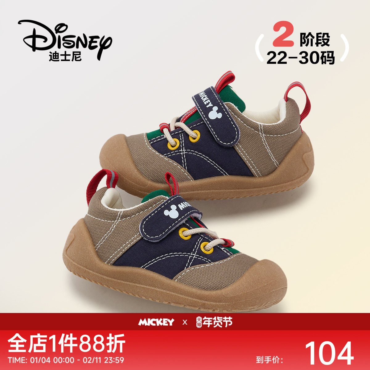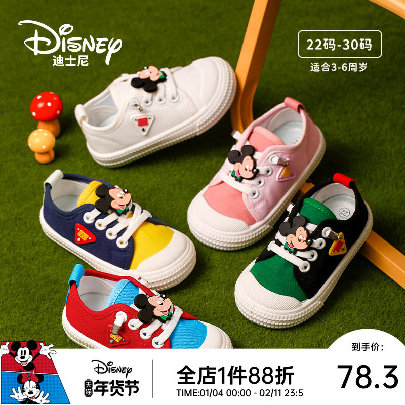 迪士尼童鞋米奇新款帆布鞋2025秋季男宝宝休闲幼儿园男女童学步鞋