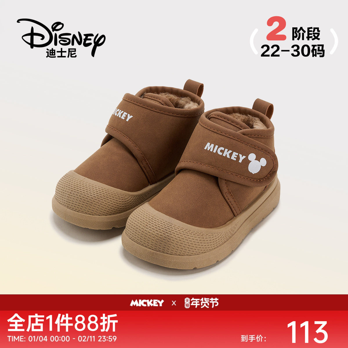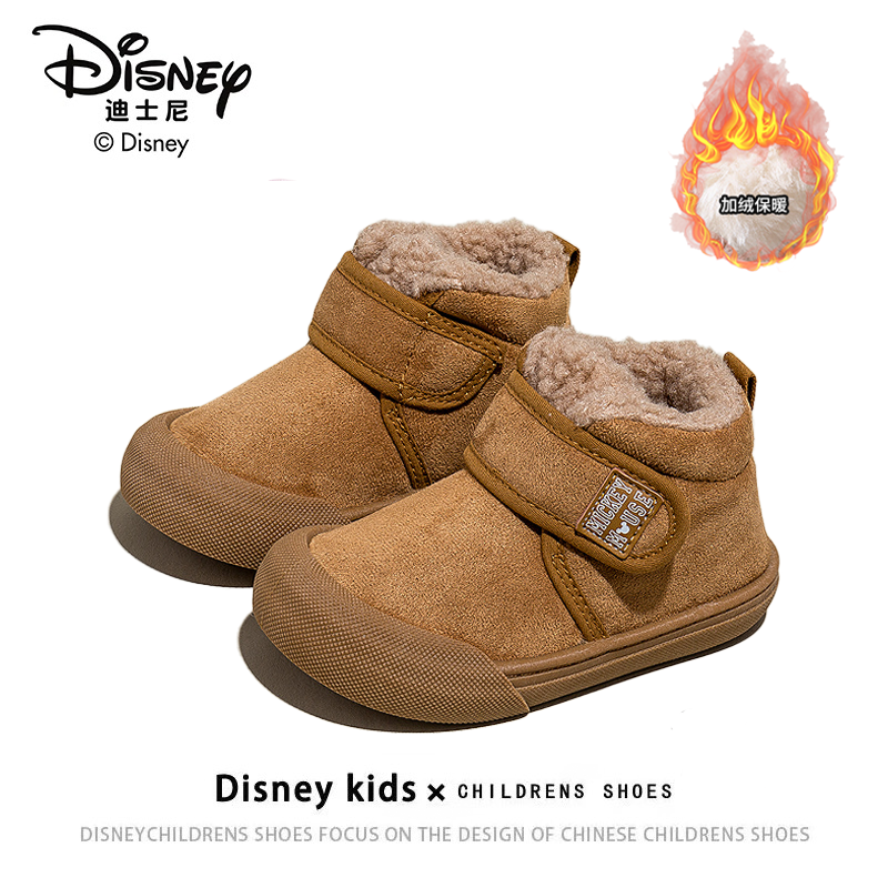 迪士尼童鞋米奇男女儿童棉鞋2025冬季新款棉靴男女童宝宝加绒鞋子