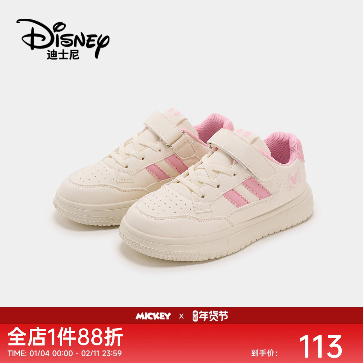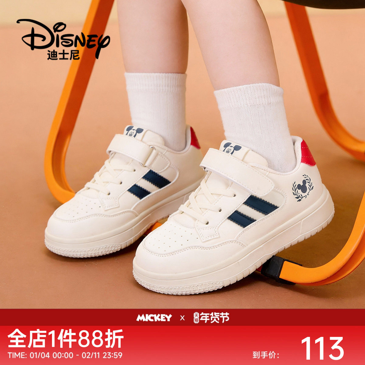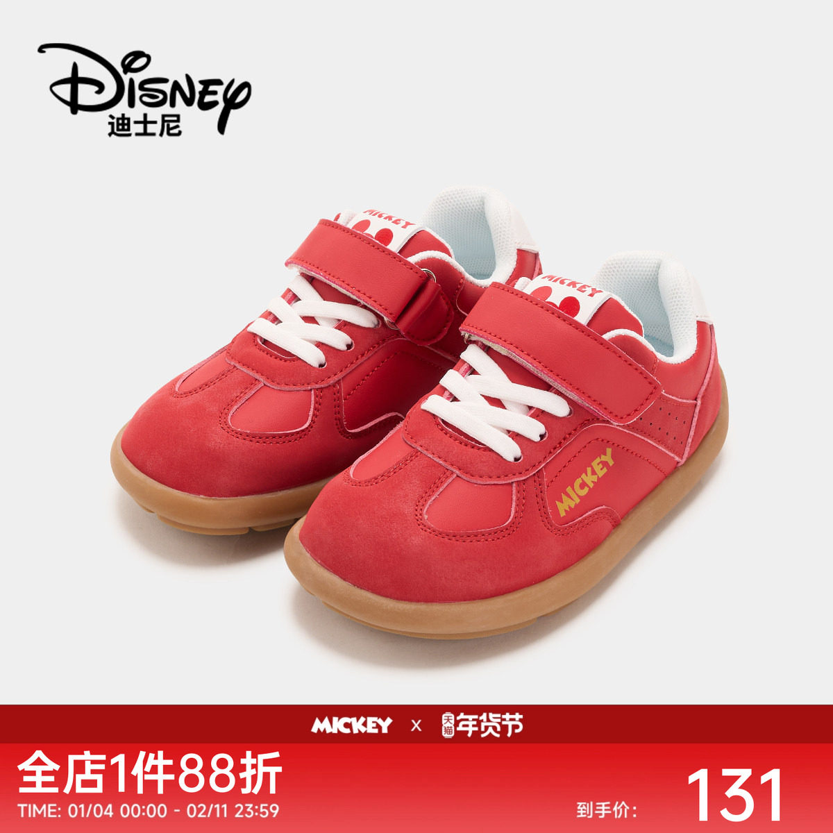 【新年限定】迪士尼童鞋米奇男女童红色德训鞋中大童软底休闲板鞋