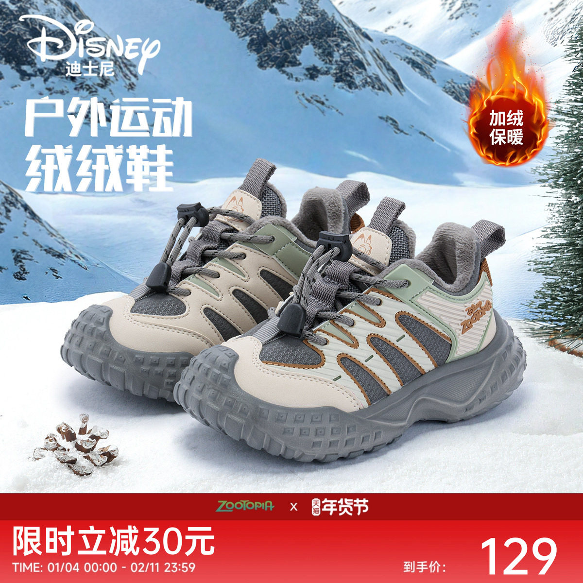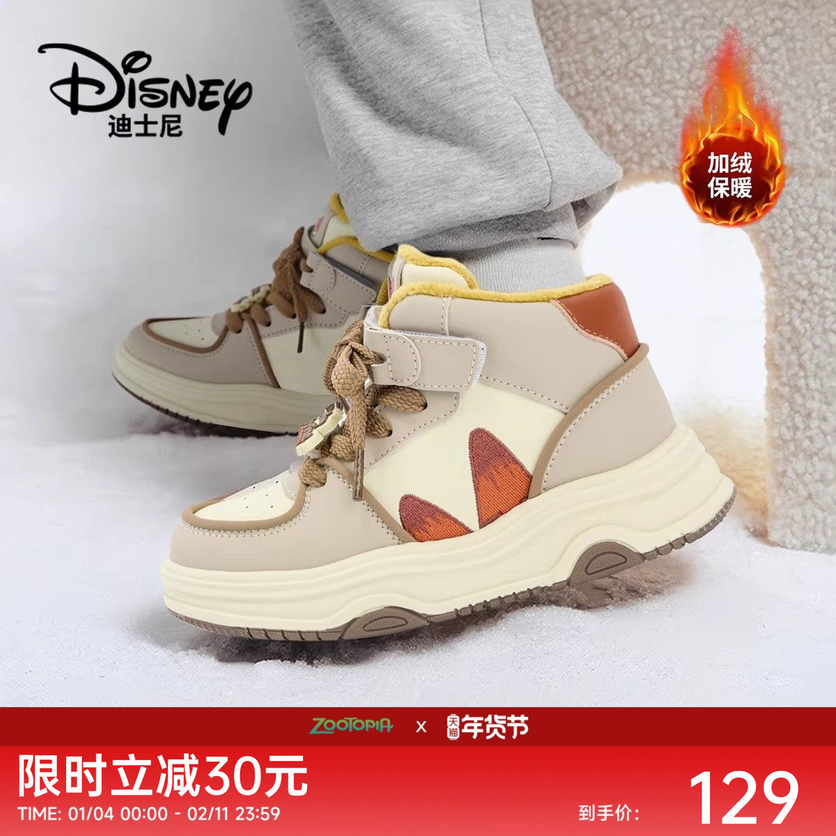 迪士尼疯狂动物城童鞋2025秋冬季新款男童运动鞋女童加绒休闲鞋子