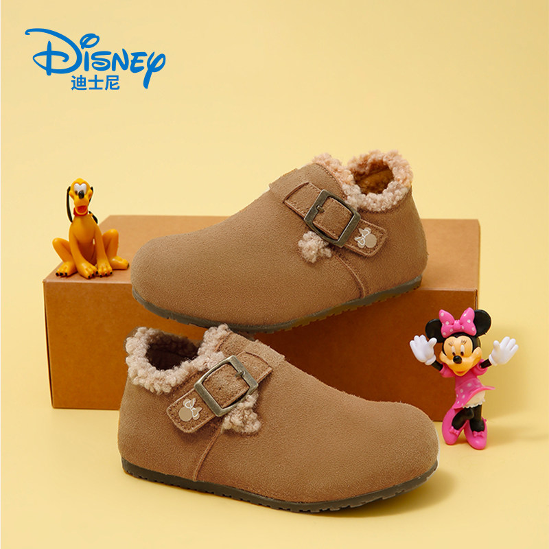 迪士尼童鞋 米奇 女童软底毛毛鞋2024冬季新款儿童加绒保暖勃肯鞋