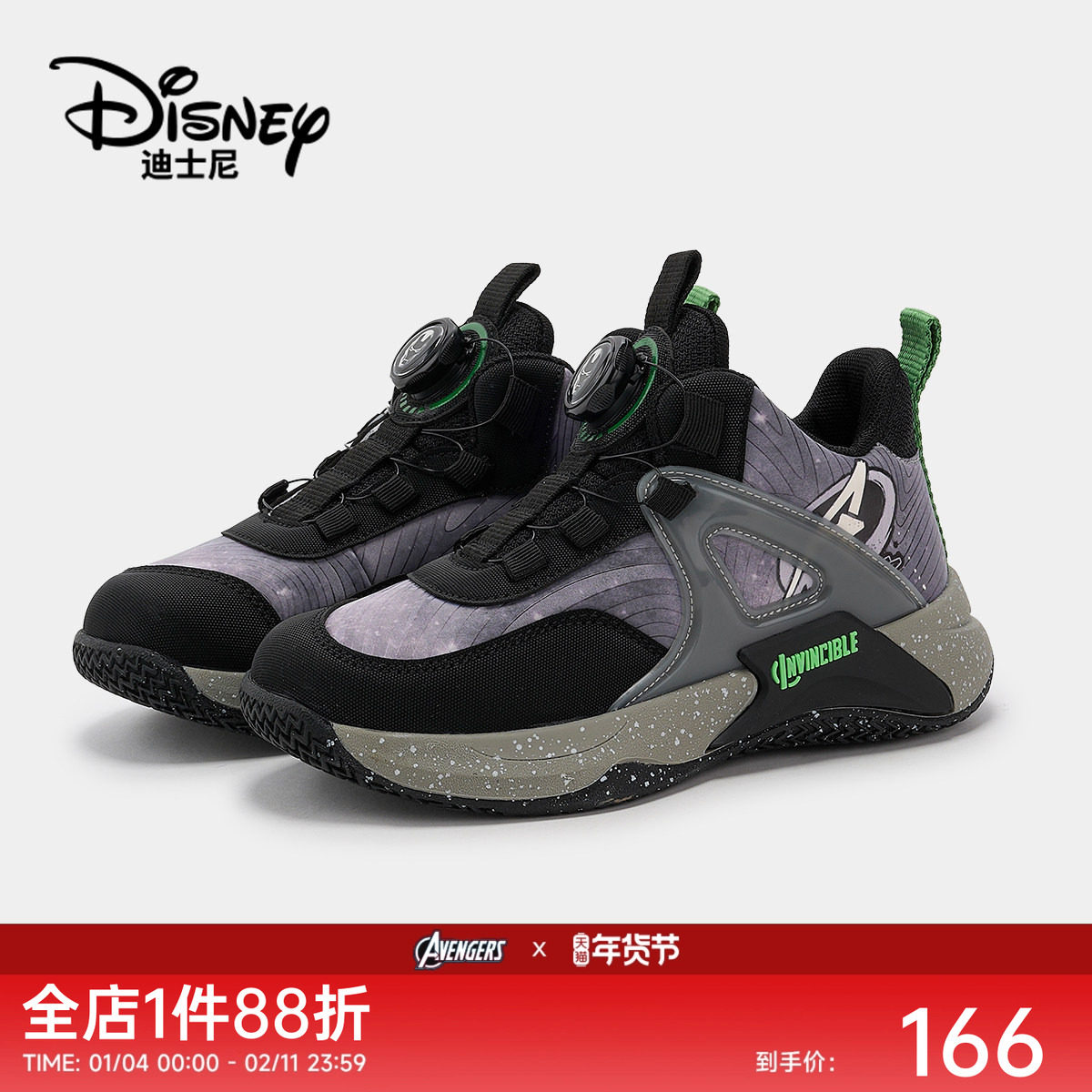 迪士尼童鞋漫威男童2025秋季新款旋钮扣休闲鞋厚底户外篮球运动鞋