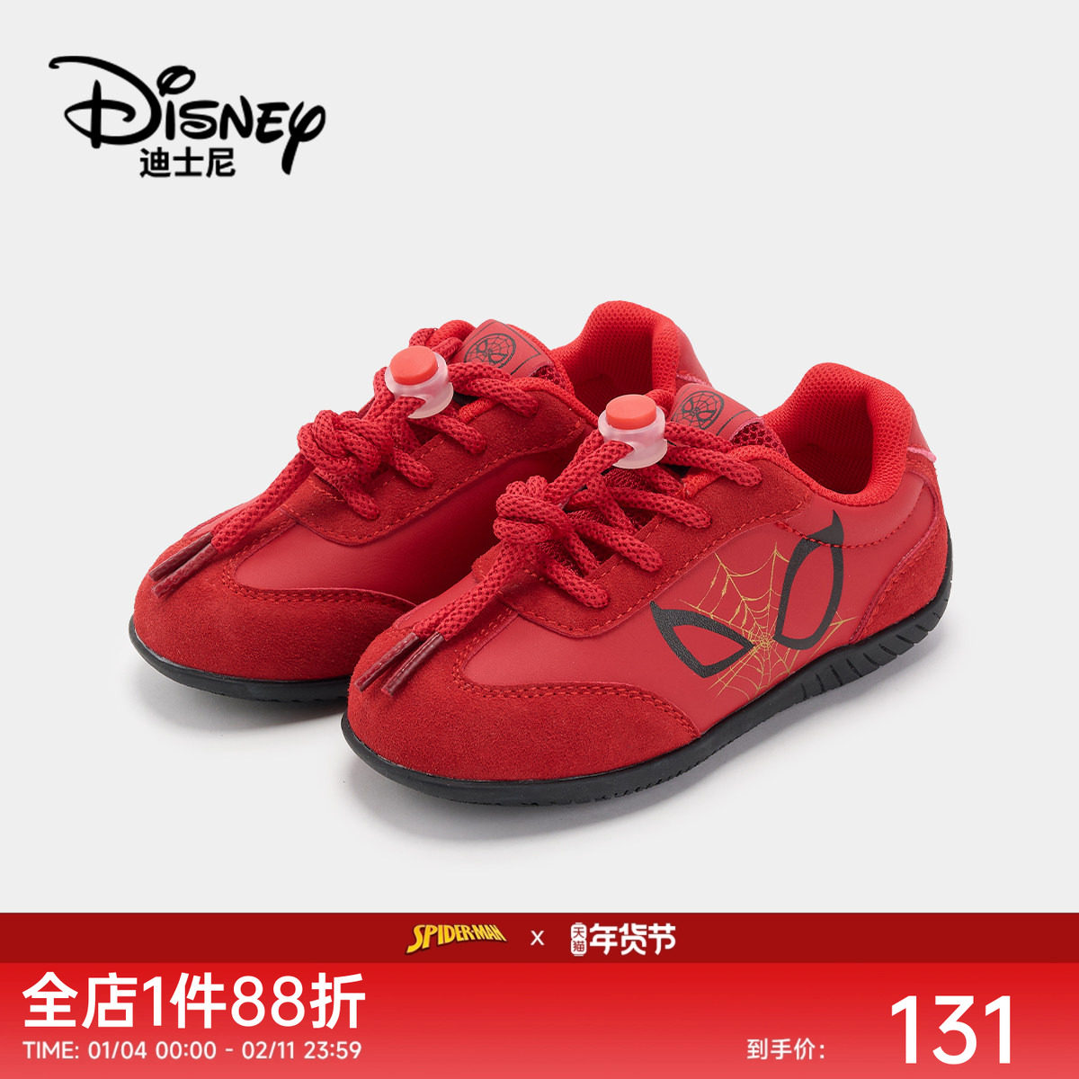迪士尼童鞋蜘蛛侠中大童阿甘鞋2025秋季新款运动鞋复古慢跑德训鞋
