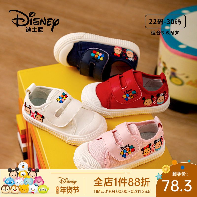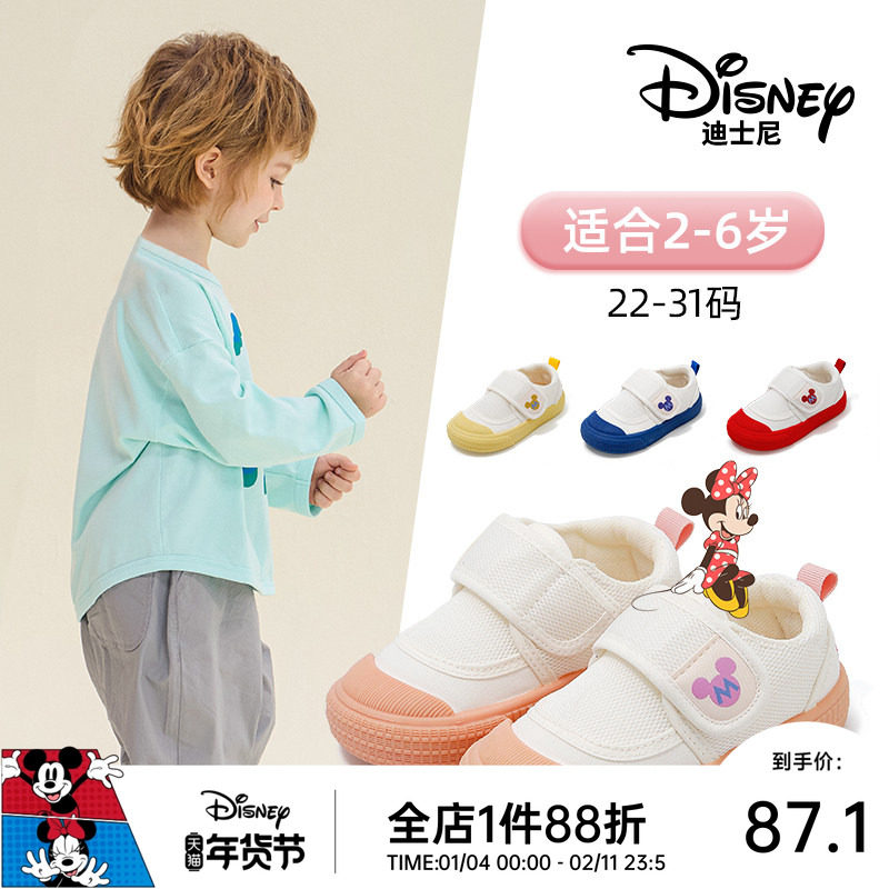 迪士尼童鞋帆布鞋宝宝入园室内鞋春秋新款男女童休闲小白鞋米奇头