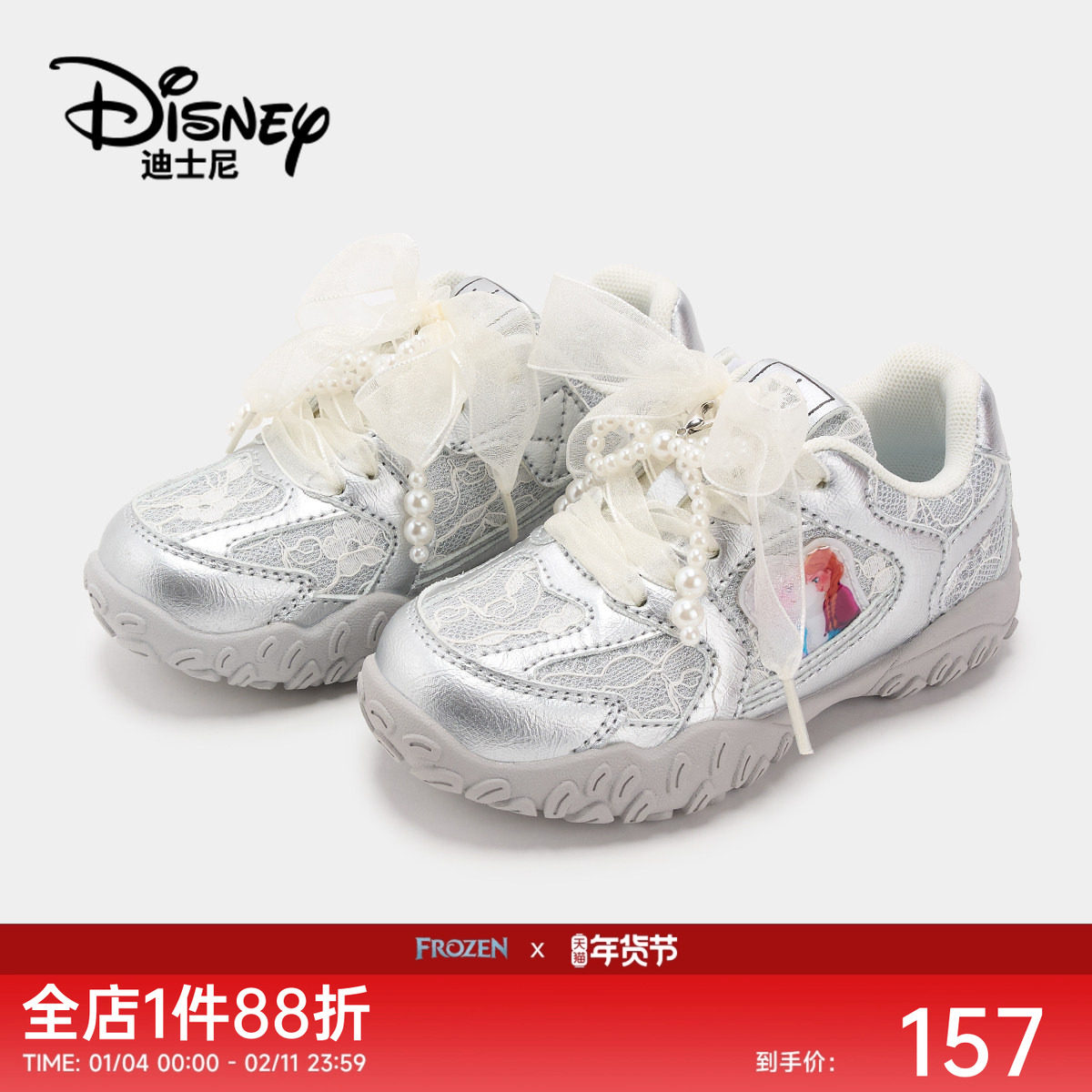 迪士尼童鞋冰雪奇缘2025新款女童艾莎公主运动鞋时尚防滑轻便鞋子
