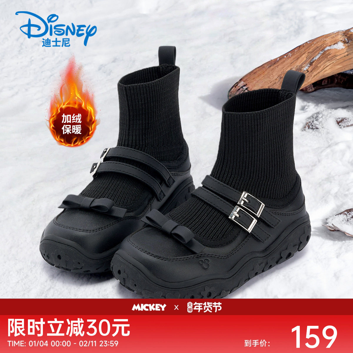 迪士尼童鞋米奇家族靴子2025秋冬季棉鞋新款加厚袜靴加绒女童鞋子