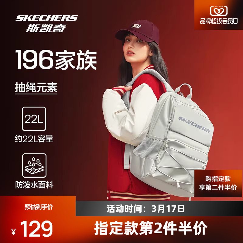 斯凯奇男女双肩包高中大学生书包防泼水旅行运动背包大容量电脑包