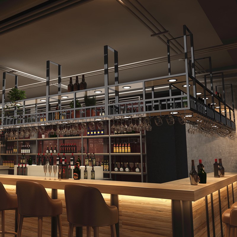 酒吧吧台吊架倒挂酒杯架悬挂式酒柜酒架铁艺壁挂红酒葡萄酒杯架子
