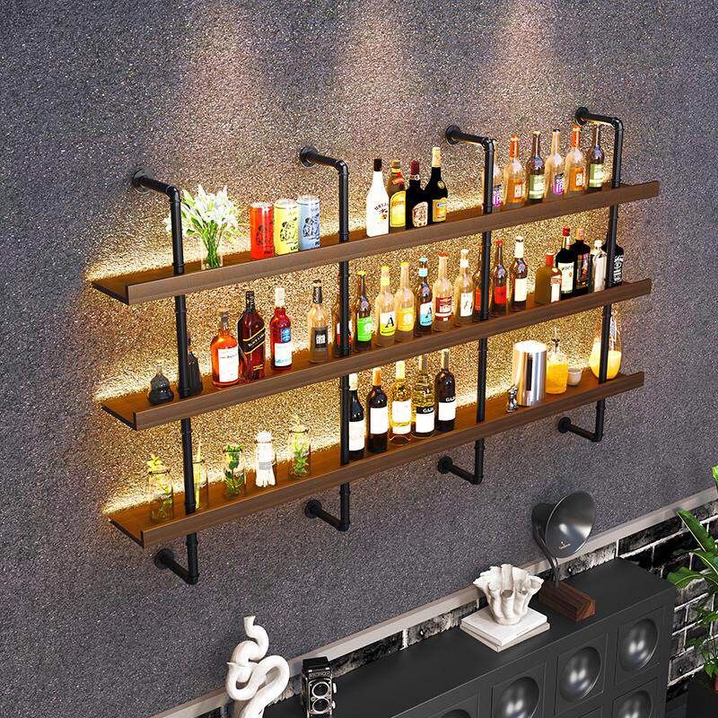 吧台酒柜靠墙壁挂式发光酒架置物架工业风展示架铁艺餐厅红酒架子