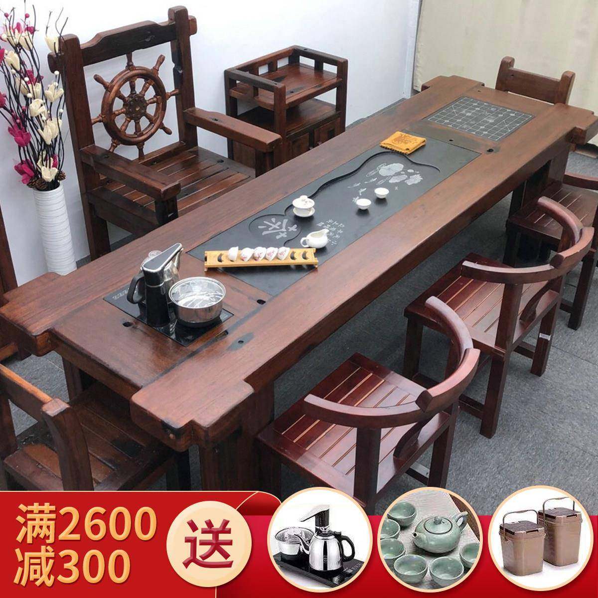 老船木茶桌椅组合实木茶具套装一体中式功夫泡茶台家用茶几大桌子