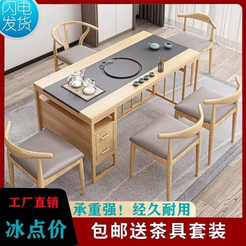 茶桌椅组合新中式简约办公室家用铁艺实木茶具套装一体式功夫茶桌