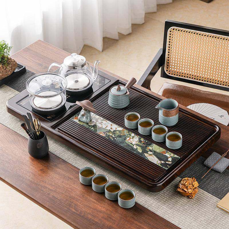 黑檀实木茶具套装家用全自动功夫茶台中式客厅办公室茶海茶炉茶桌