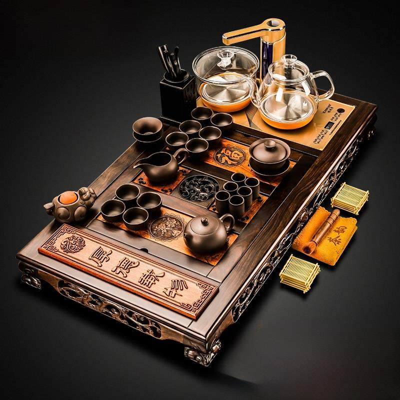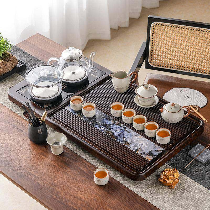 整套茶具套装全自动烧水壶实木柯木茶盘烧水家用喝茶办公功夫泡茶