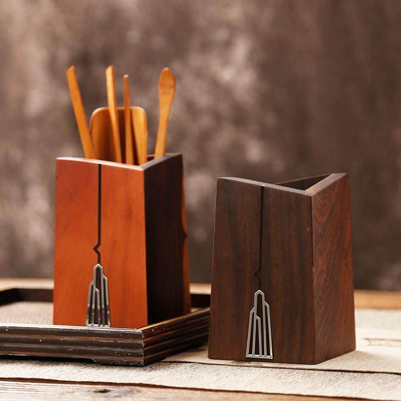 黑檀木茶道六君子茶筒单个实木茶具套装收纳家用茶夹茶针配件茶桶