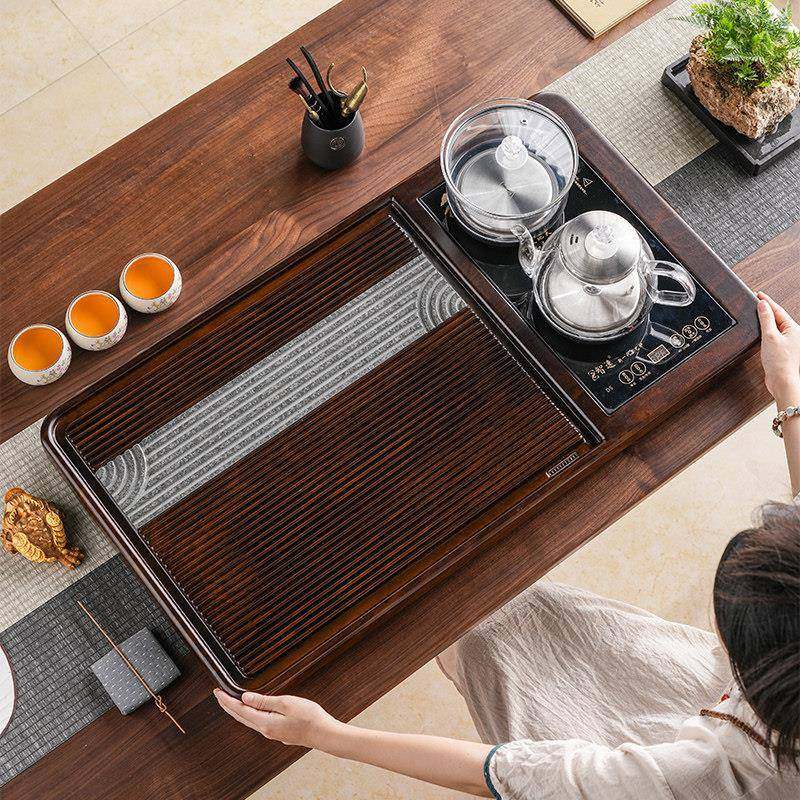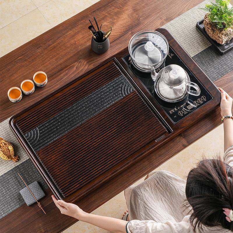 新款茶盘家用全自动一体式奢石岩板乌檀色实木茶具套装办公室茶台