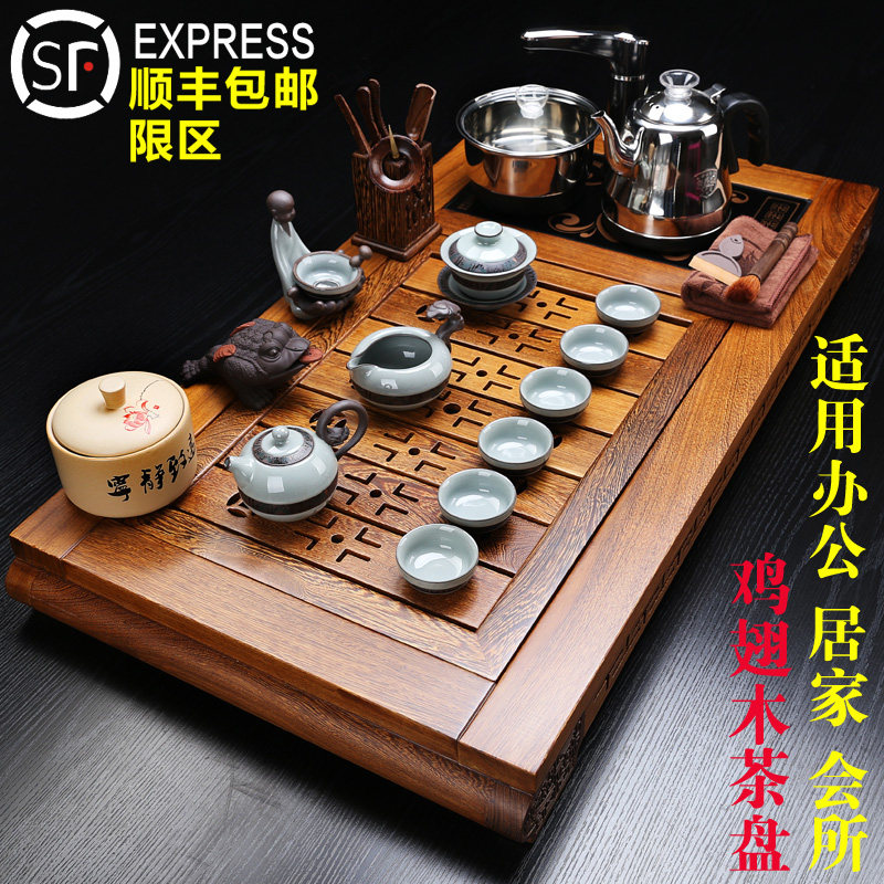 鸡翅实木茶具套装家用客厅整套四合一功夫茶海中式茶台全自动茶盘