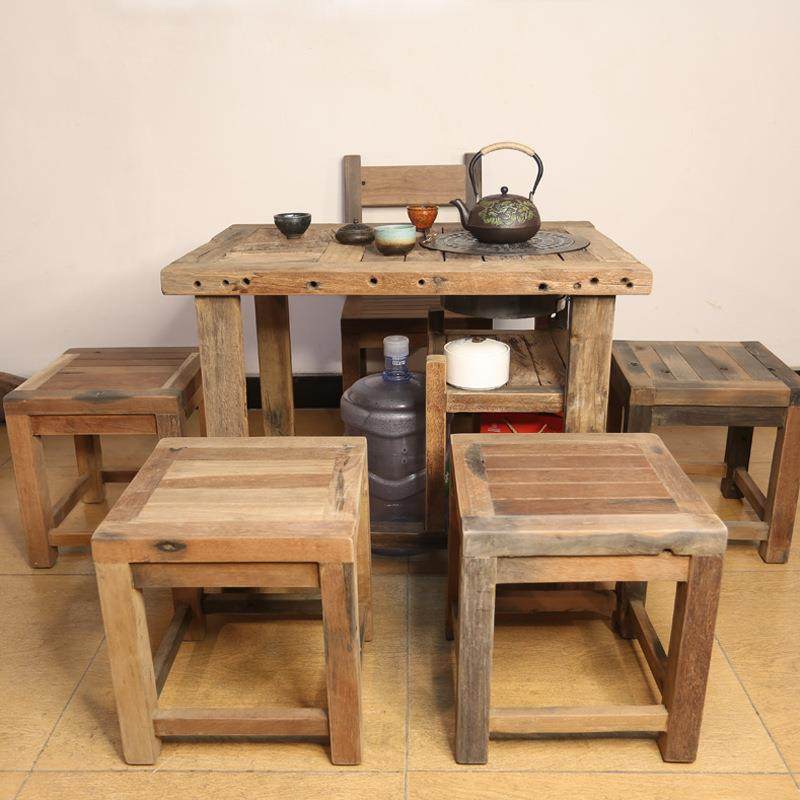 实木围炉煮茶桌椅套装茶桌家用小茶E台阳台实木茶具套装船木泡茶