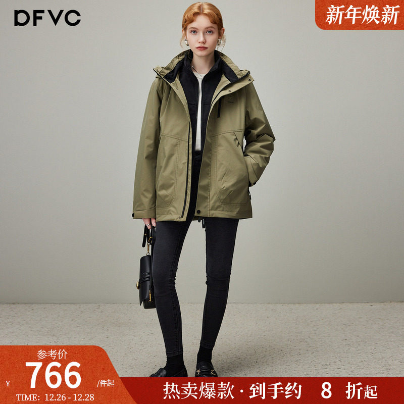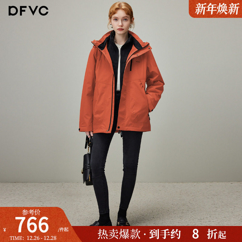 dfvc三合一户外防风运动冲锋衣女2025冬季新款可卸内胆保暖两件套