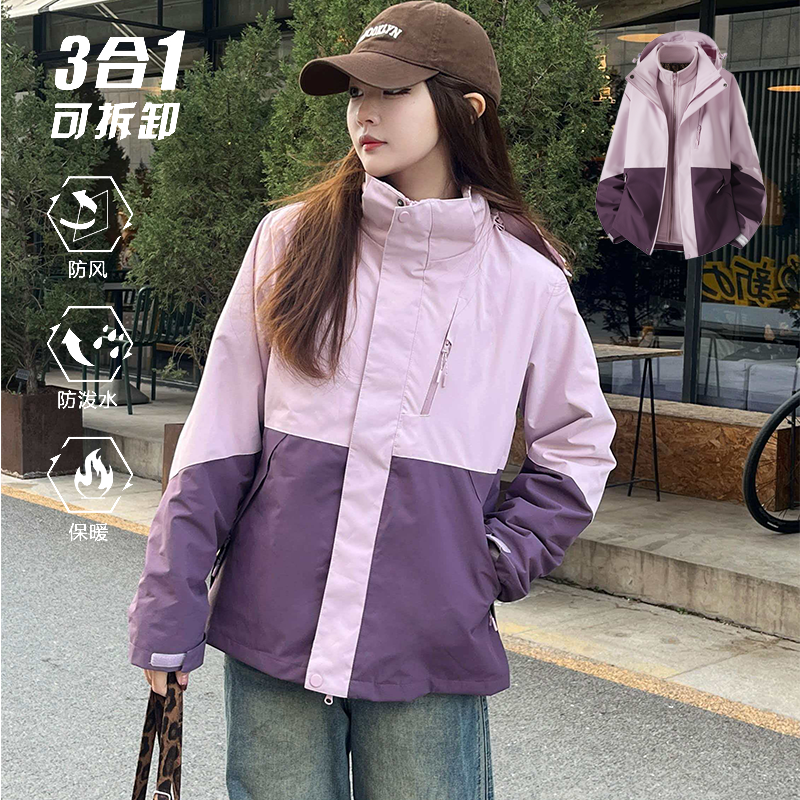 户外运动冲锋衣女冬季防风防水两件套三合一可拆卸小个子团购厂家