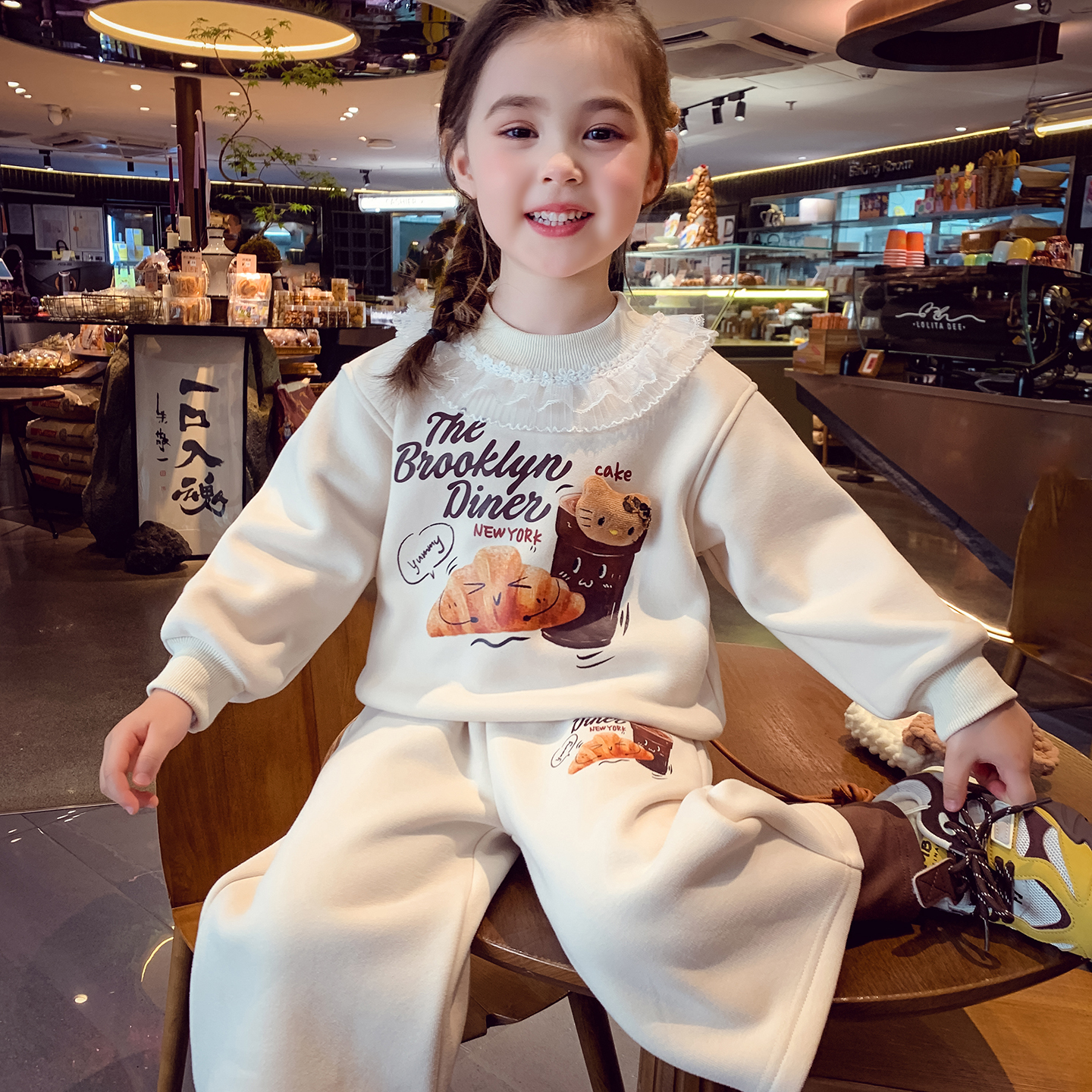 女童加绒套装秋冬装新款韩版可爱女宝宝洋气卫衣卫裤幼儿园两件套