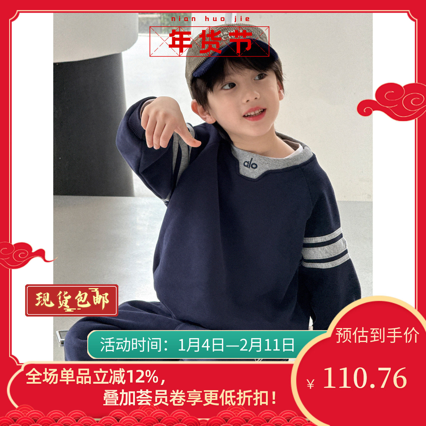 儿童运动套装两件套2025冬装新款韩版圆领上衣束脚裤男女宝童装潮