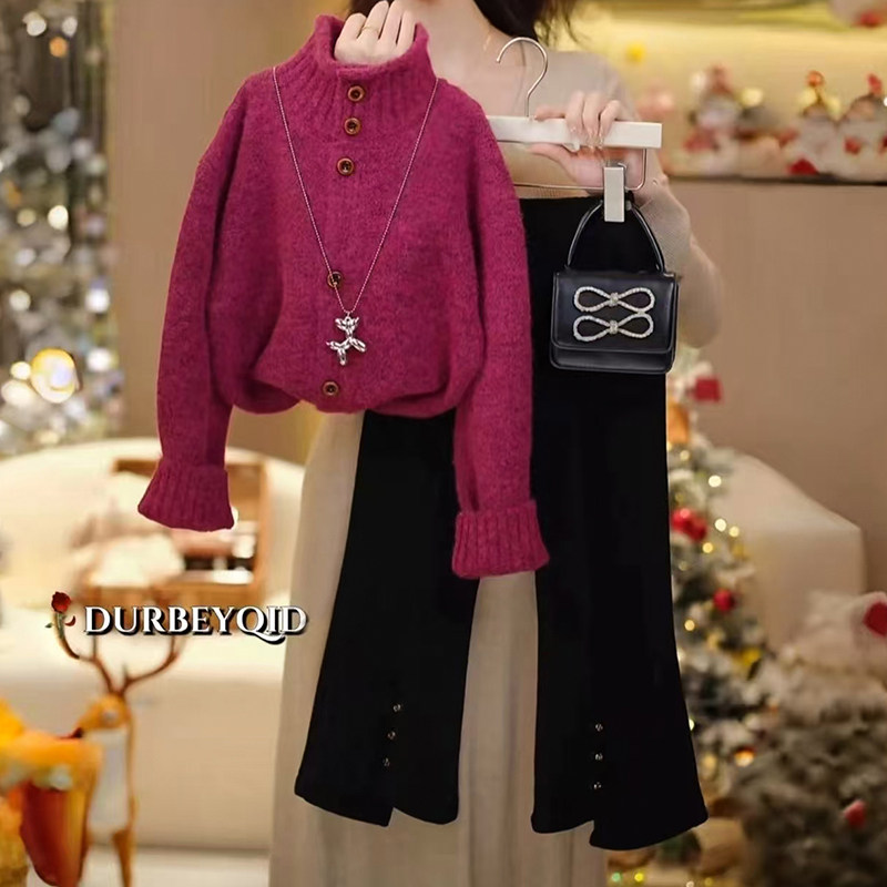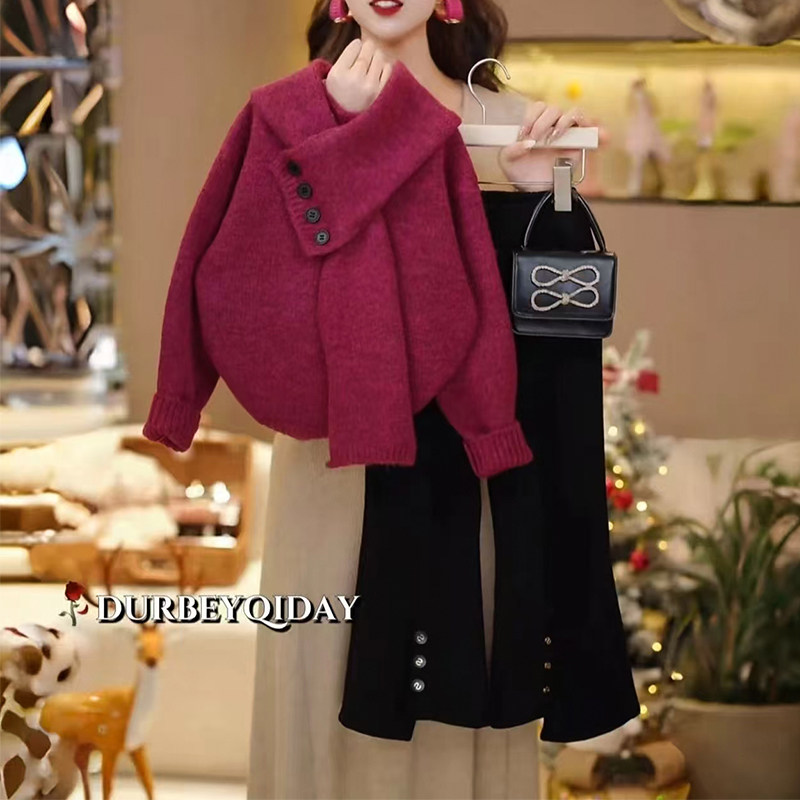 - 毛衣阔腿裤套装