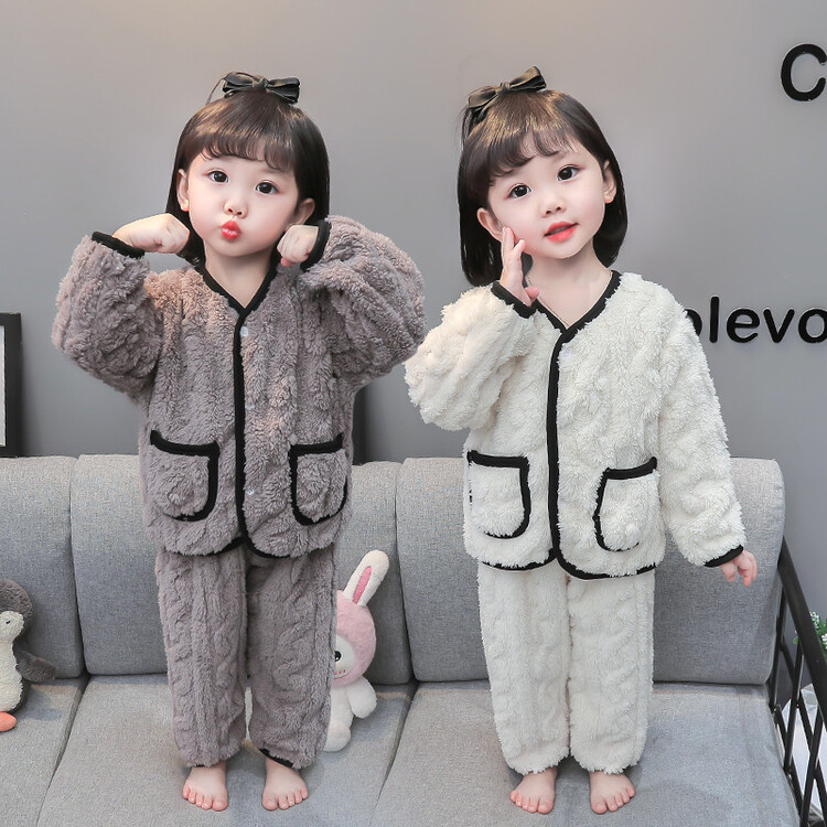 儿童新款冬装睡衣女宝宝韩版洋气法兰绒套装小童加厚保暖两件套潮