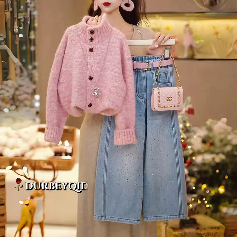 2026女童秋冬牛仔套装新款儿童韩版洋气时髦冬装中大童两件套长款