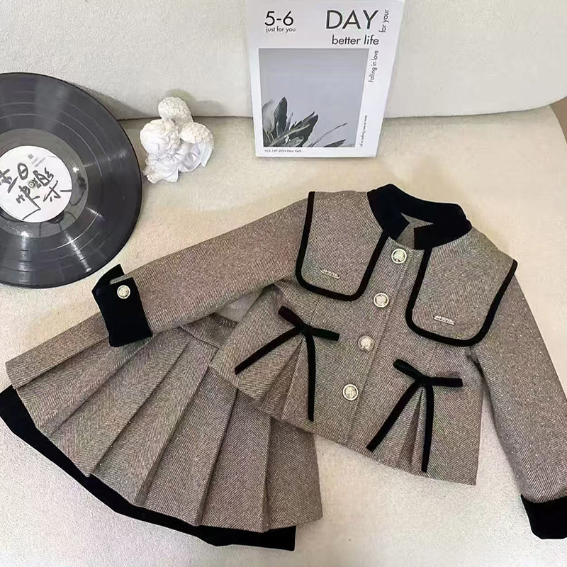 女童冬装套装2026新款儿童洋气韩版小香风蝴蝶两件套女孩冬季衣服