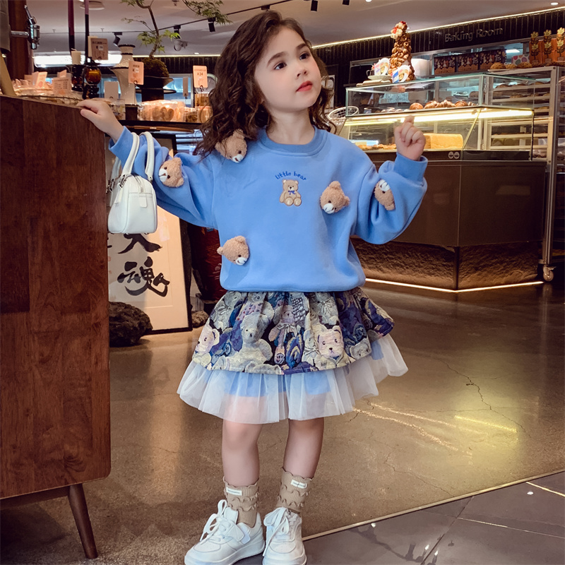 米米哈罗女童套装裙冬装2025新款儿童韩版卫衣短裙女孩网红两件套