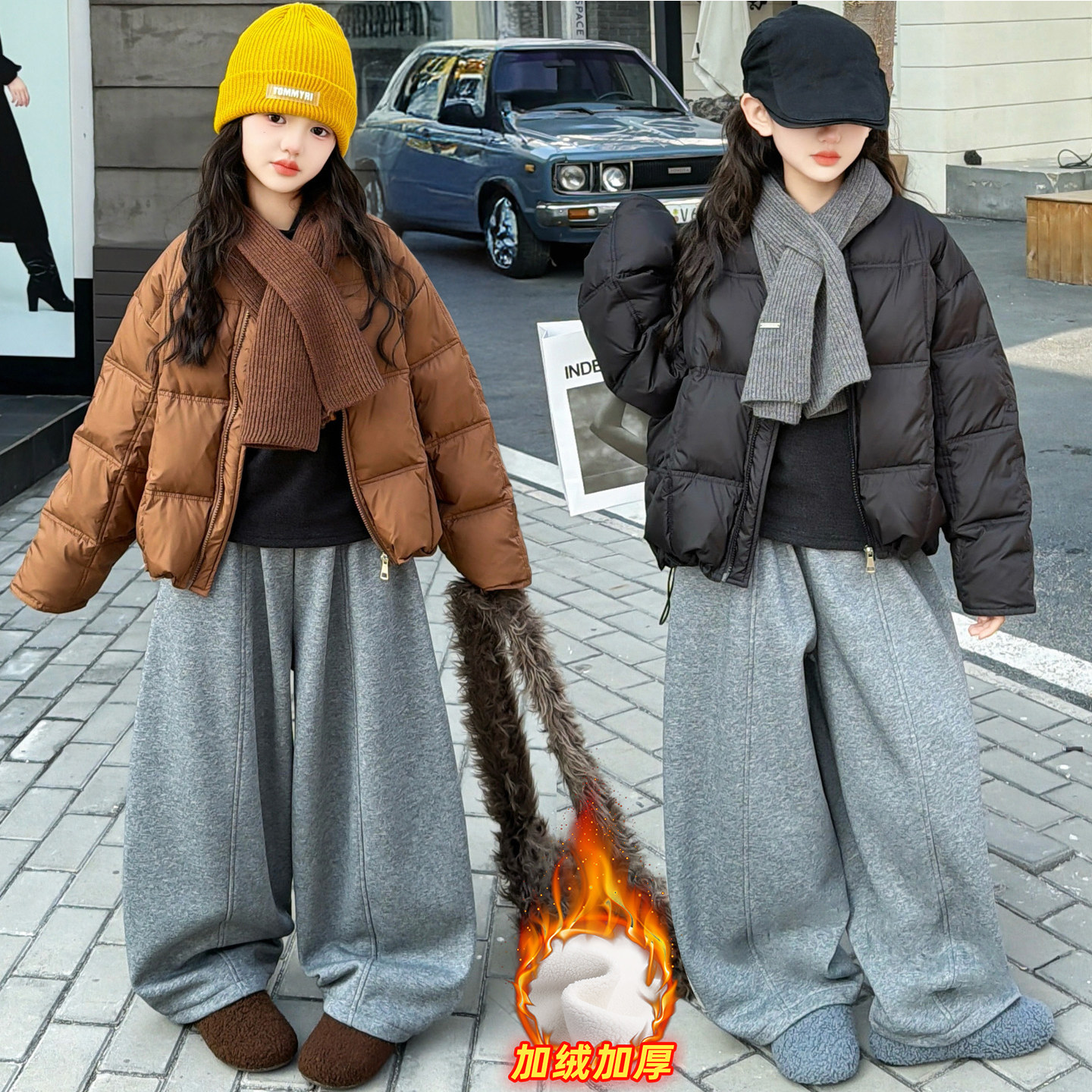 韩国女童套装棉服冬装2025新款休闲外套加厚阔腿裤洋气韩版两件套