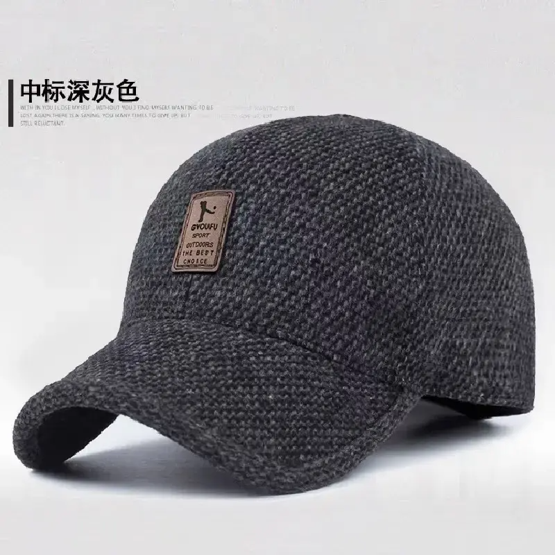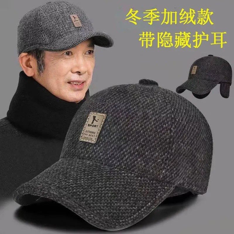 【秋冬季带护耳】加绒加厚棒球帽中老年人鸭舌帽帽子保暖男棒球帽