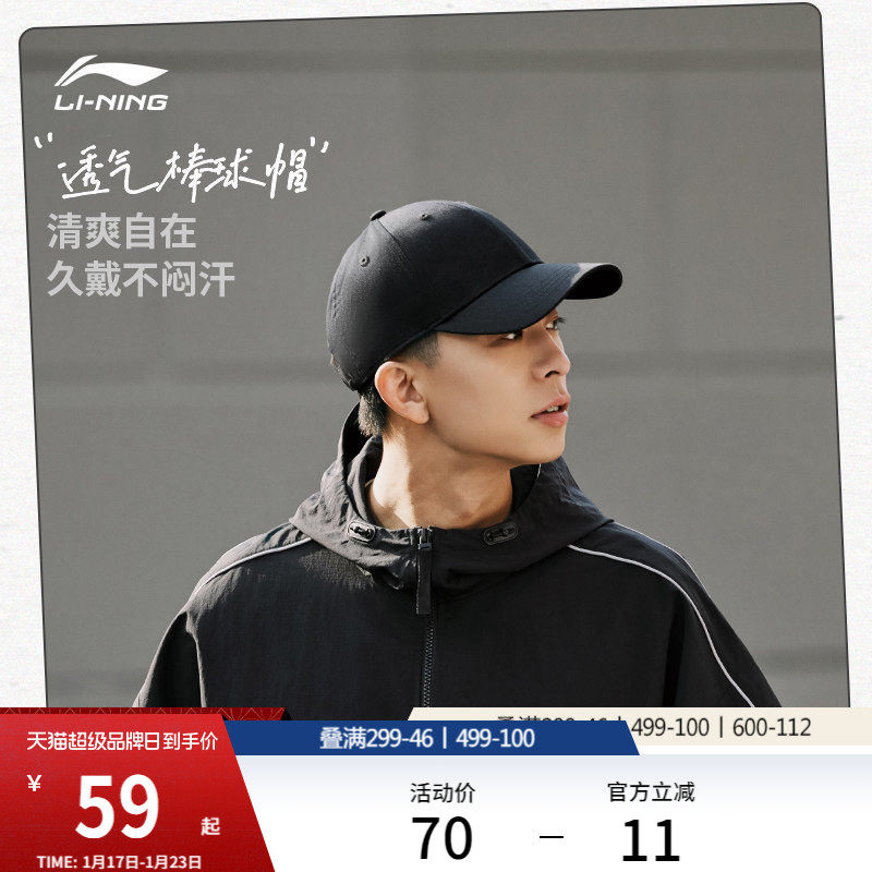 李宁棒球帽男女士官方新款显脸小舒适透气遮阳帽刺绣LOGO运动帽子