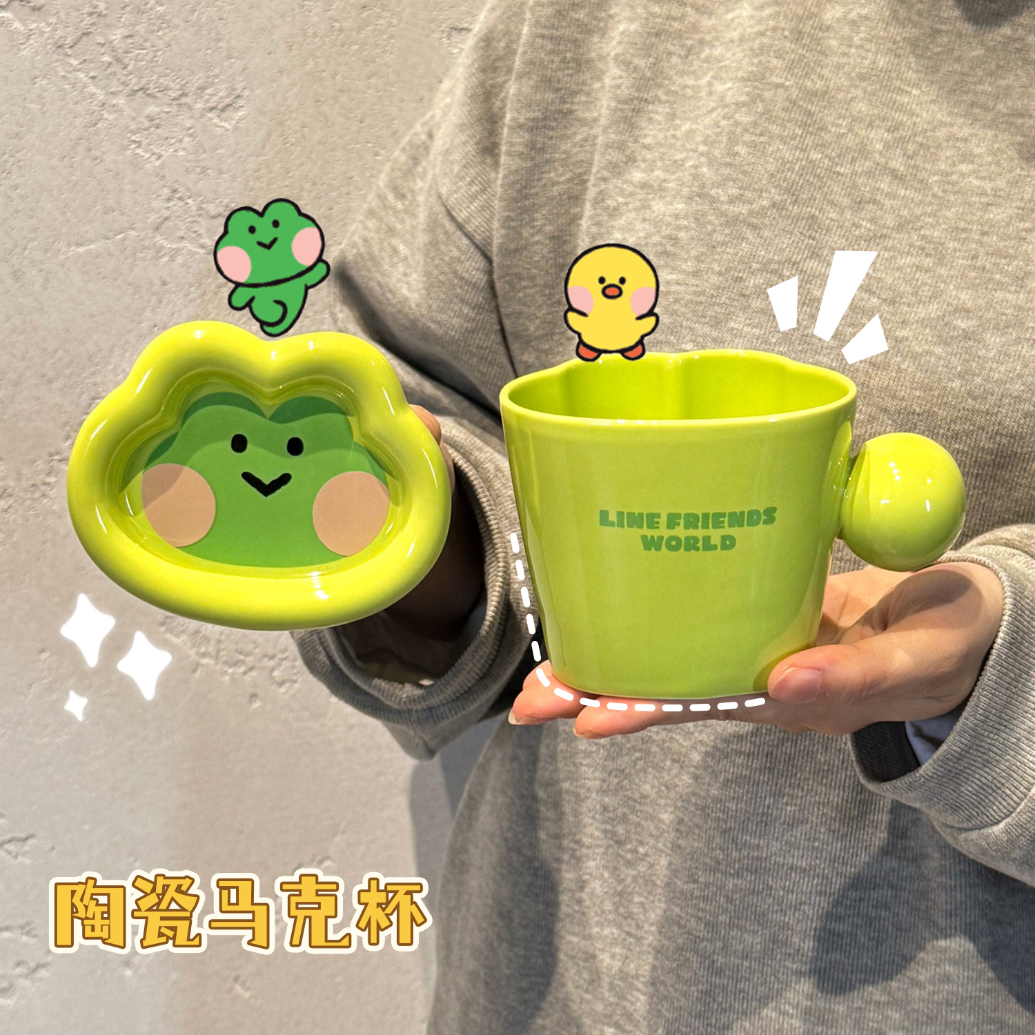 布朗熊马克杯带盖陶瓷卡通情侣水杯生日礼物办公室喝水高颜值杯子