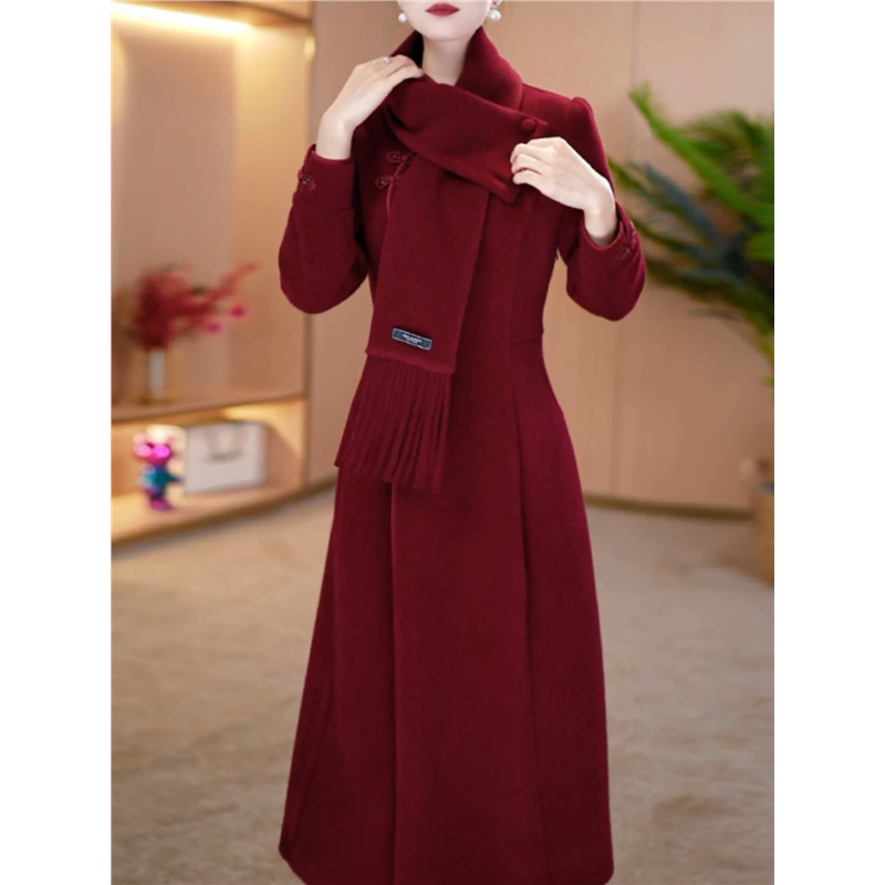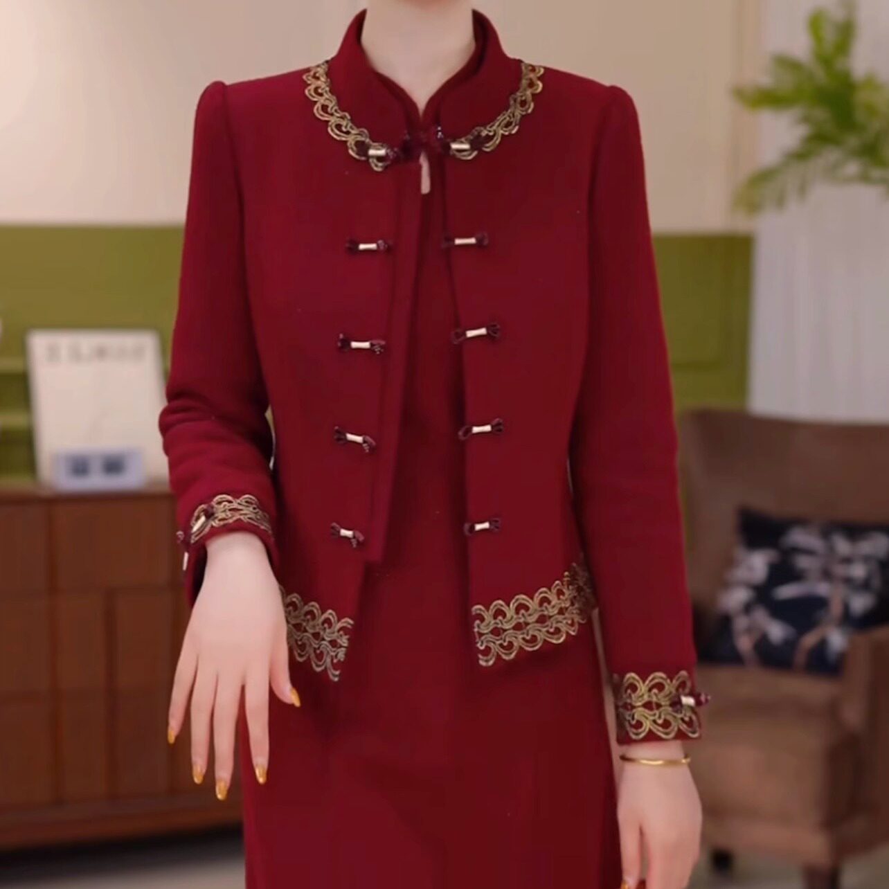 改良旗袍连衣裙2024新款女秋冬加厚高端喜婆婆婚宴妈妈礼服配大衣