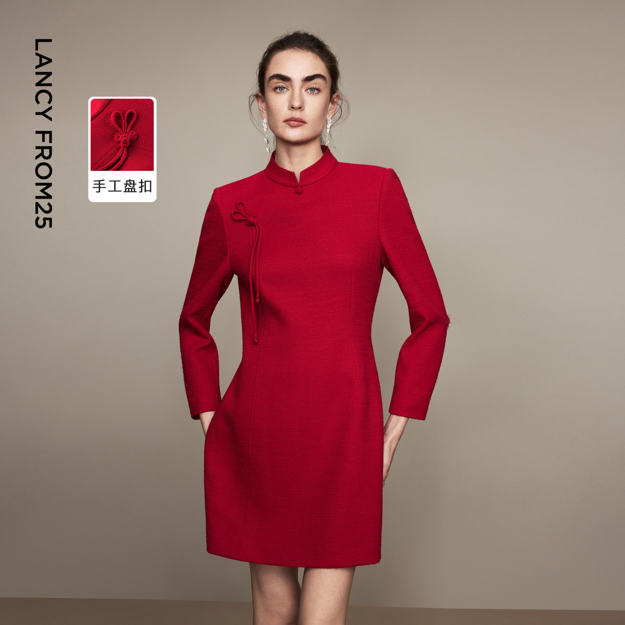 【MONEY HONG】朗姿红色新中式立领改良旗袍连衣裙2026年春季新款