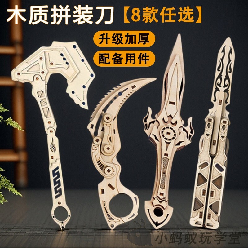 木质拼装模型刀手工蝴蝶折叠爪刀木制立体榫卯积木男生玩具刀木头