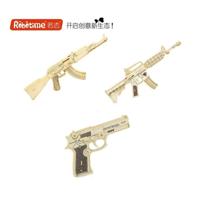 特价若态3d立体拼图手枪步枪模型 木头拼装玩具狙击枪男生diy积木